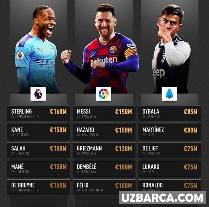 APL, La Liga va A Seriyaning ayni damdagi eng qimmat futbolchilari