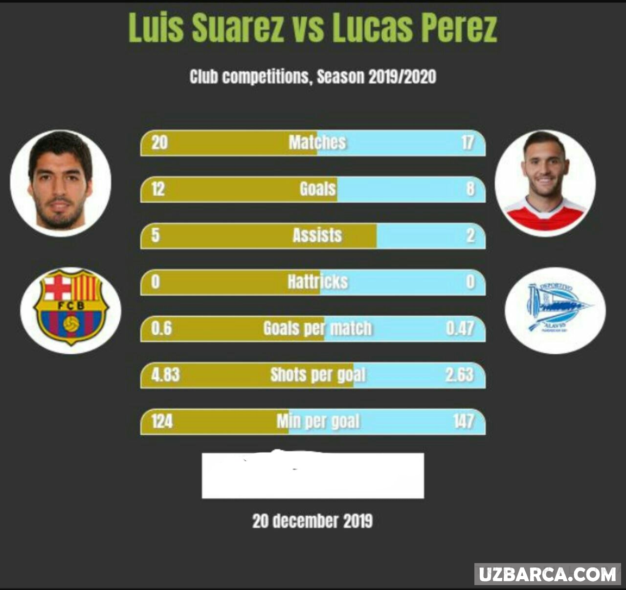 Luis Suarez va "Alaves" hujumchisi Lucas Perezning ushbu mavsumdagi statistikasi