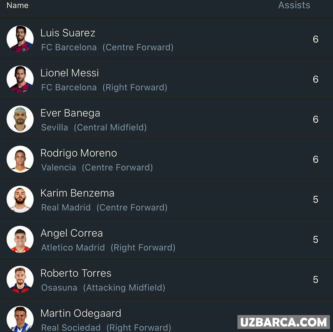 La Liga.Eng yaxshi asistentlar ro'yhati