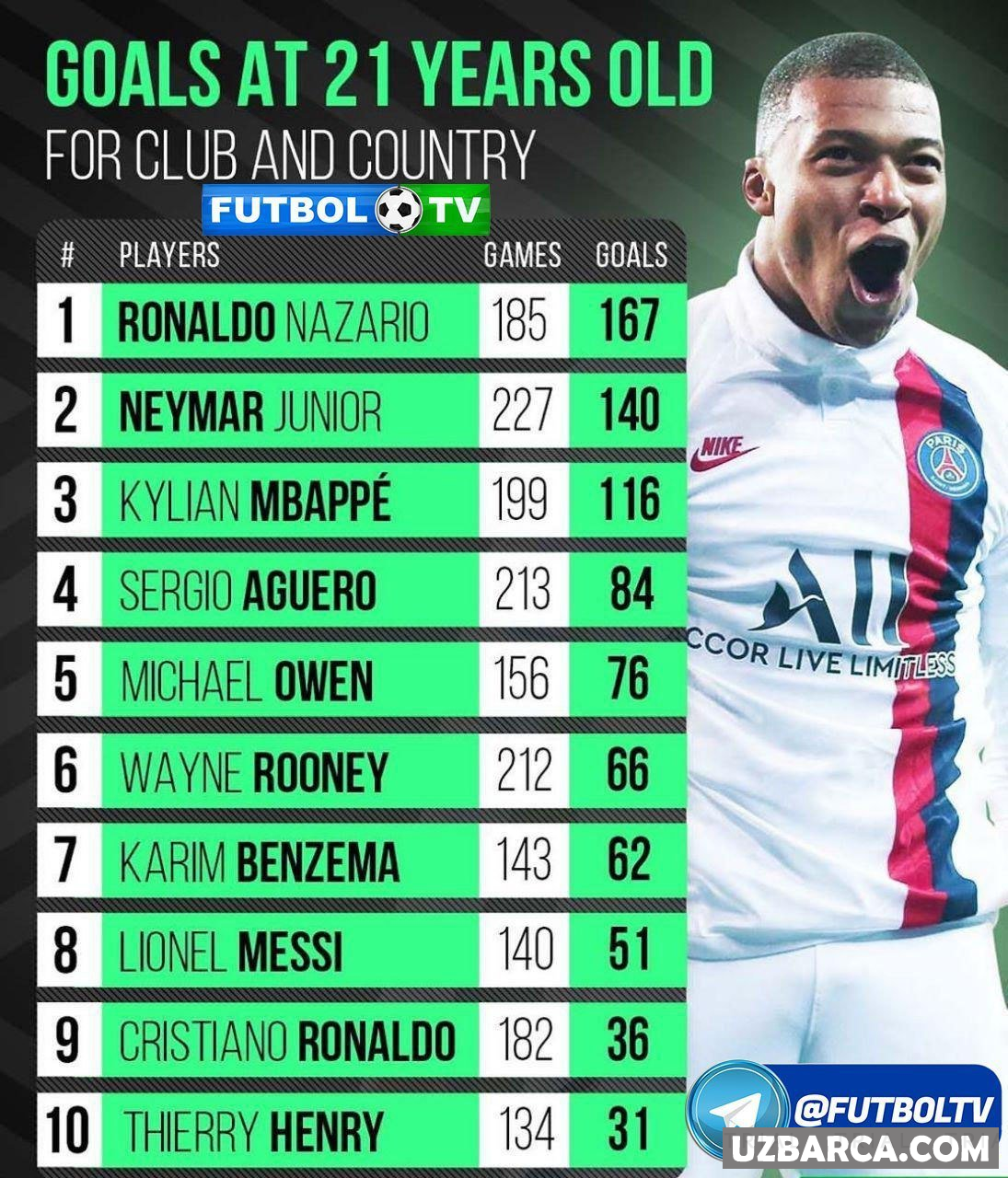 Siz tanigan futbolchilar orasida qaysi biri 21 yoshigacha eng ko'p gol urgan?