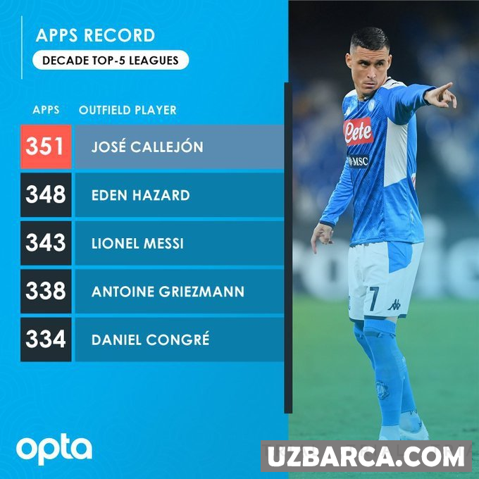 So'nggi 10 yil ichida top-5 chempionatlarda eng ko'p o'yin o'tkazgan futbolchilar