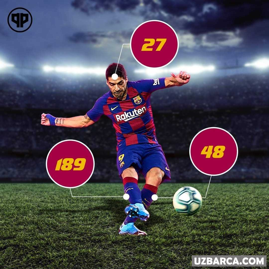 Luis Suaresning boshi, o'ng oyog'i va chap oyog'i bilan urgan gollari soni