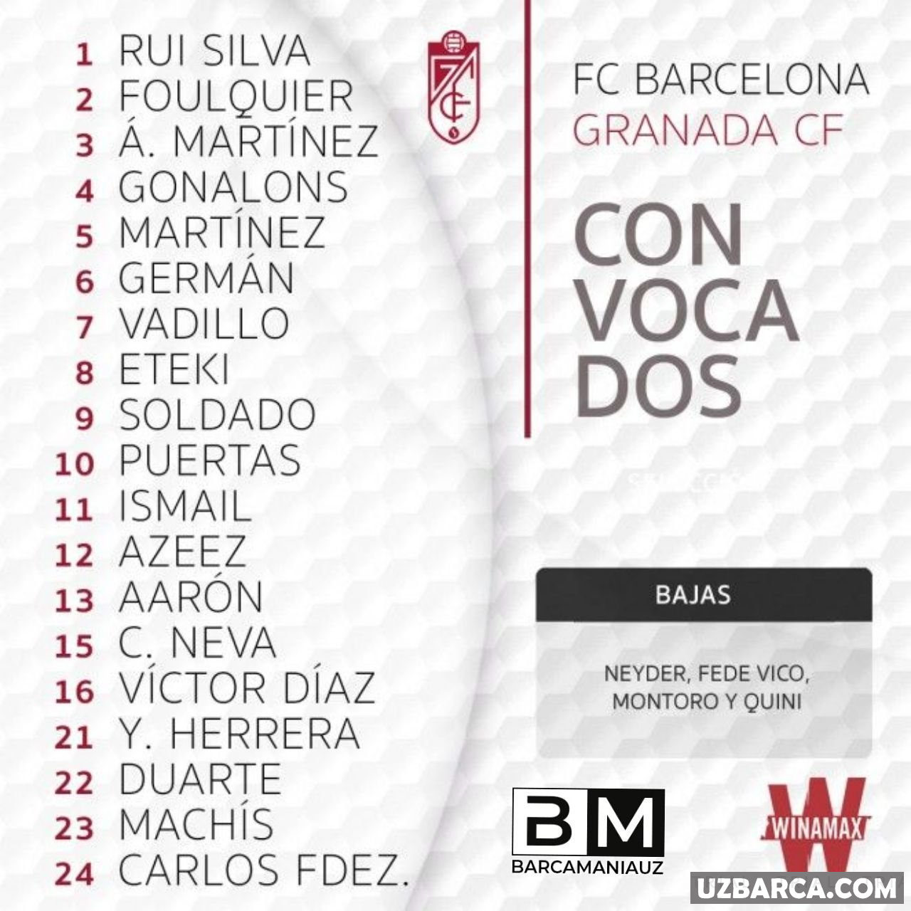 "Granada"ning "Barselona"ga qarshi qaydnomasi ma'lum