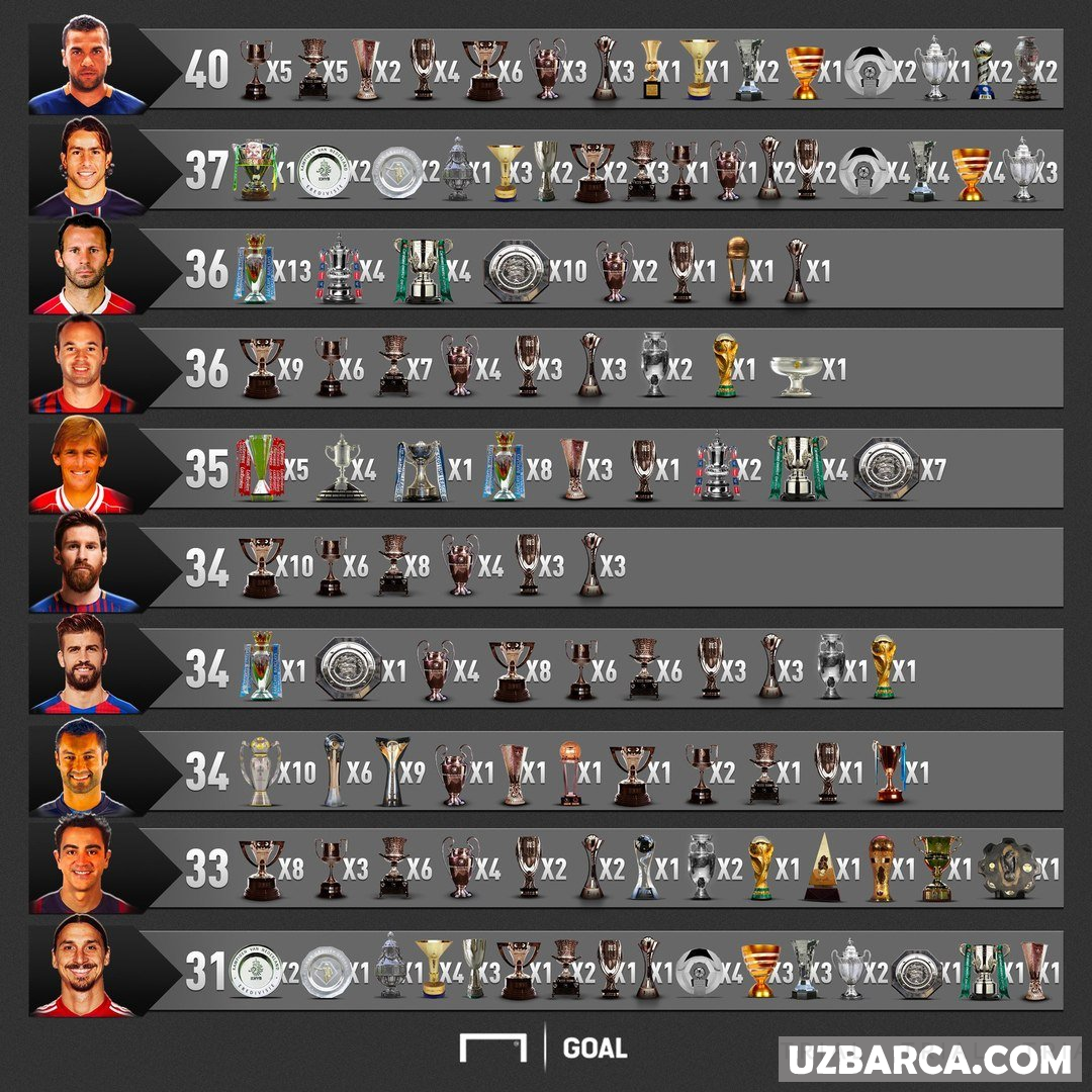 "Faoliyati davomida eng ko'p sovrin yutgan futbolchilar"