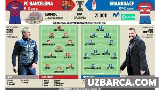 Barselona vs Granada tushishi kutilayotgan tarkiblar
