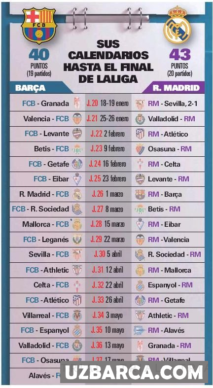 "Barcelona" va "Real"ning La Ligada qolgan o'yinlari