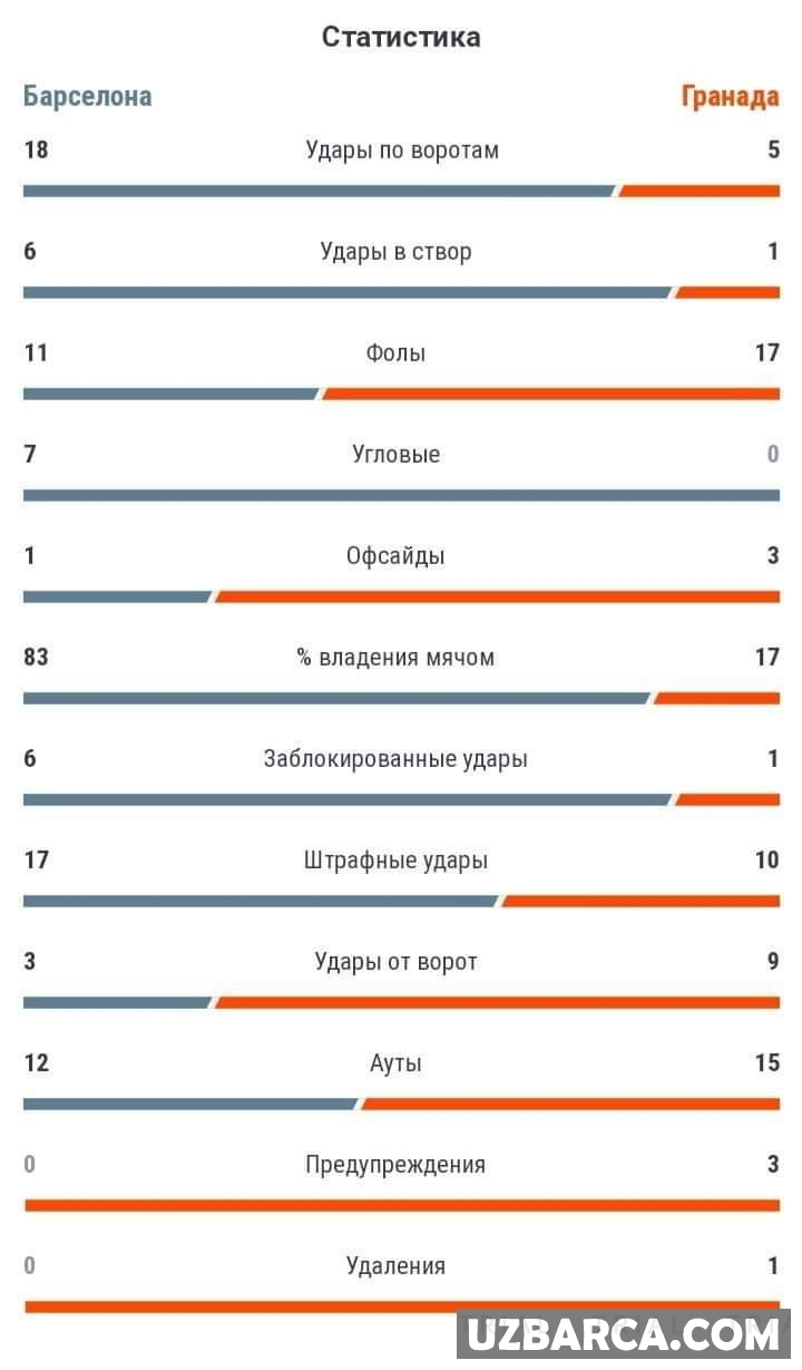 Barselona vs Granada uchrashuvidagi umumiy statistika