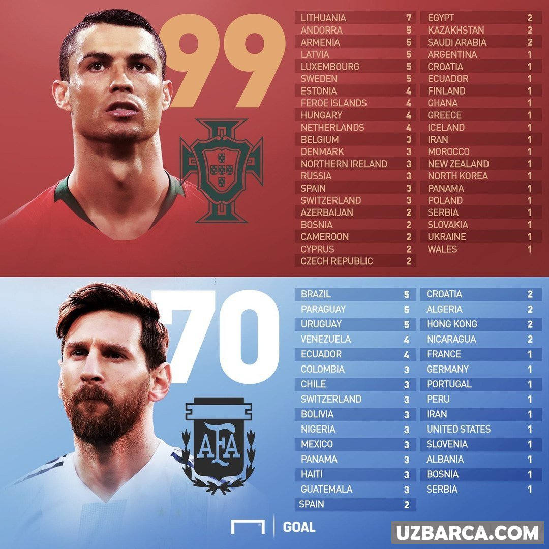 "Messi va Ronalduning terma jamoa safidagi gollari"