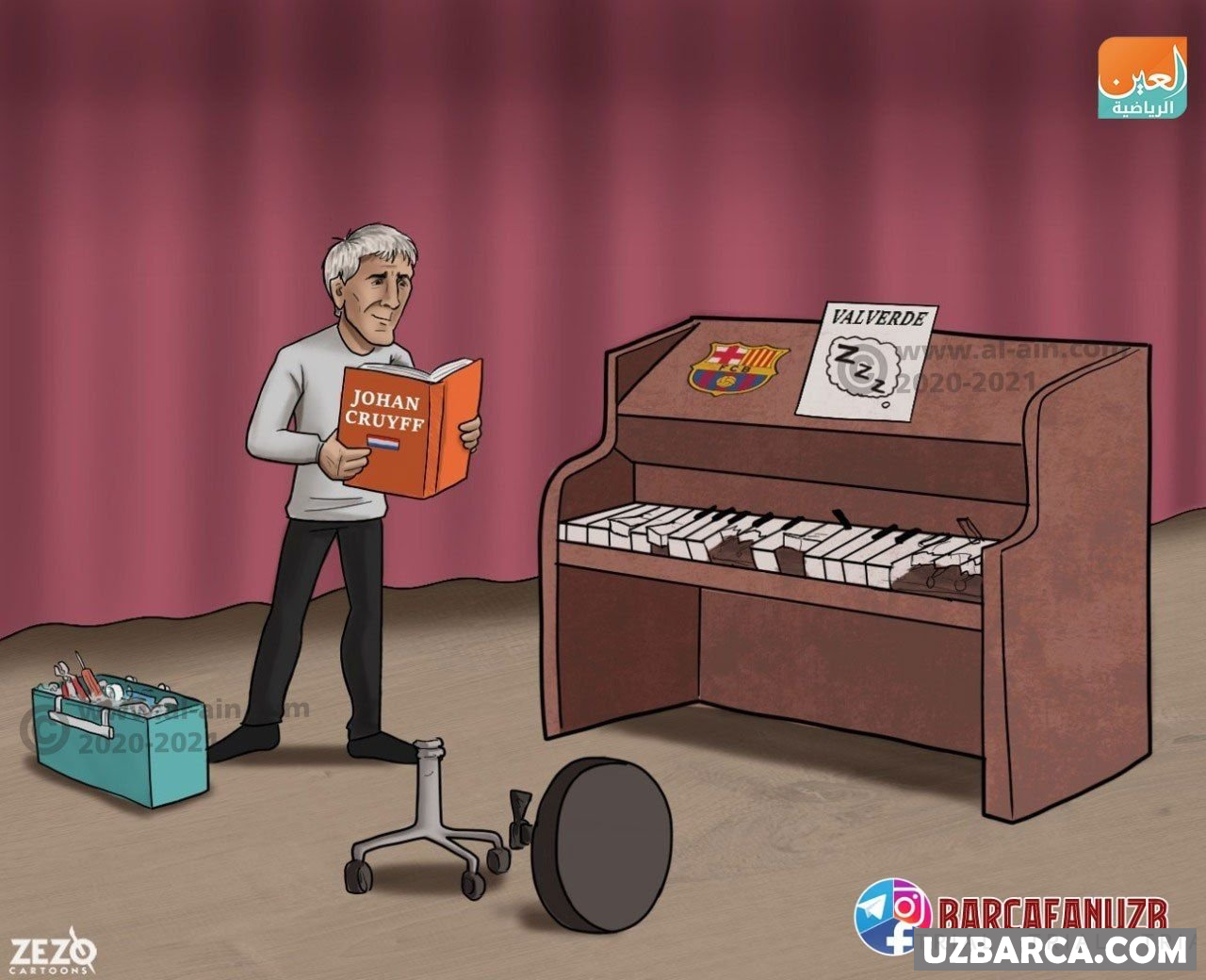 Karikatura. Kike Setien Tiki Takani Qaytarmoqda
