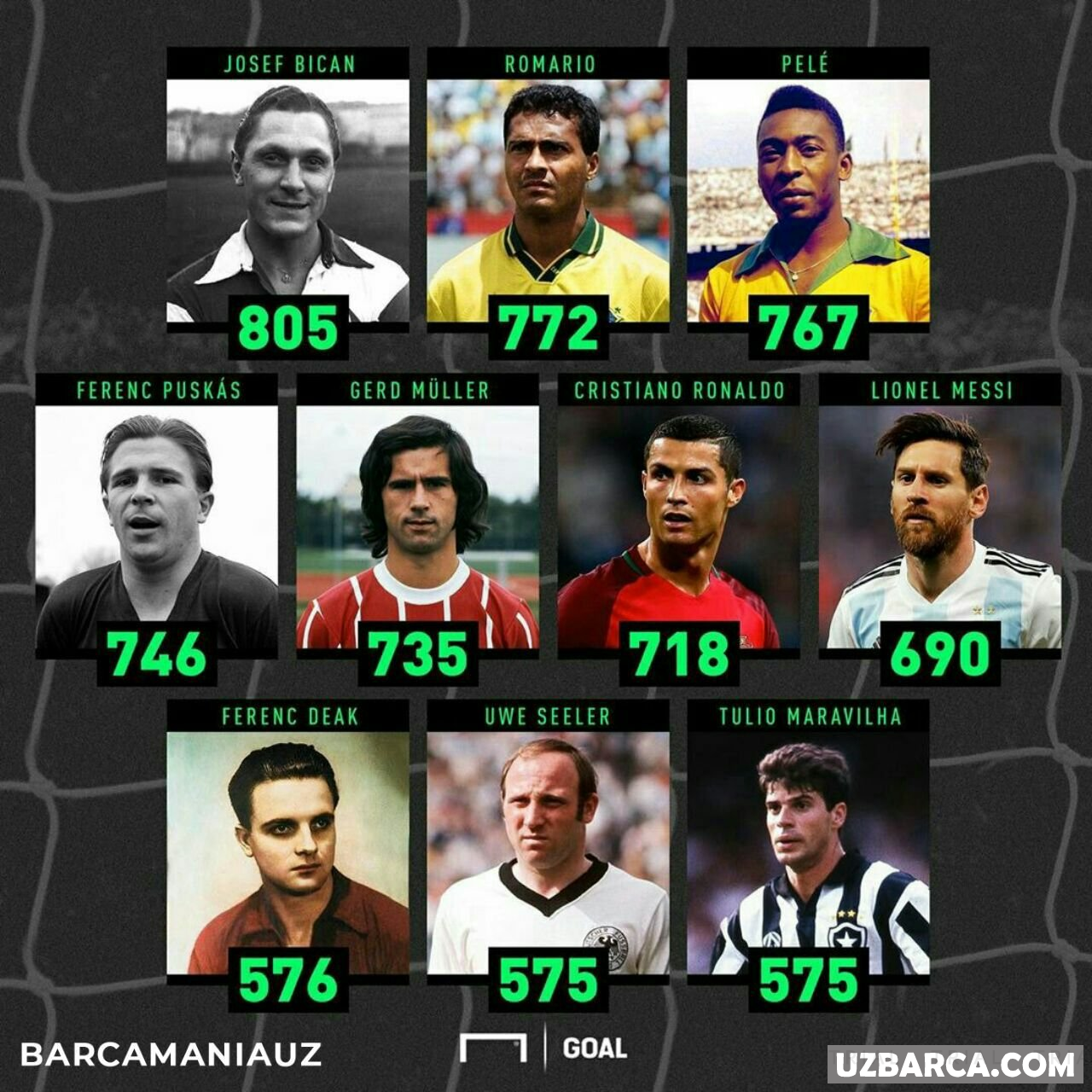 Futbol tarixida eng ko'p gol urgan futbolchilar