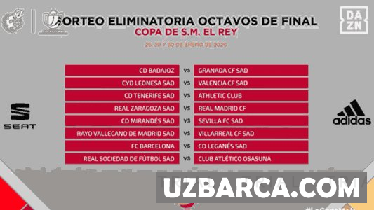 Ispaniya Kubogi musobaqasining bu bosqichdagi o'yinlari 28,29 va 30 yanvar kunlari bo'lib o'tadi.