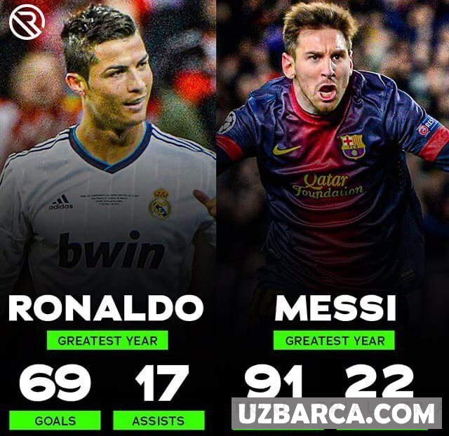 Ronaldu va Messining eng yaxshi yilidagi statistikasi