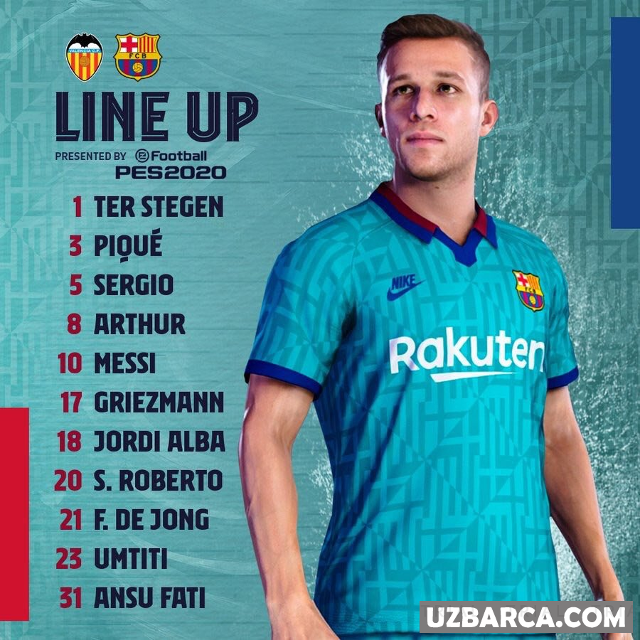 "Barcelona"ning "Valensiya"ga qarshi asosiy tarkibi ma'lum