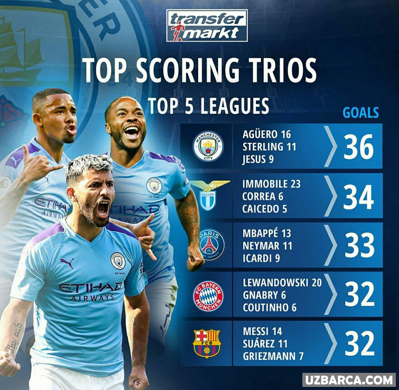 Ushbu mavsumdagi eng yaxshi hujumkor triolar TOP5 chempionatlar ichida