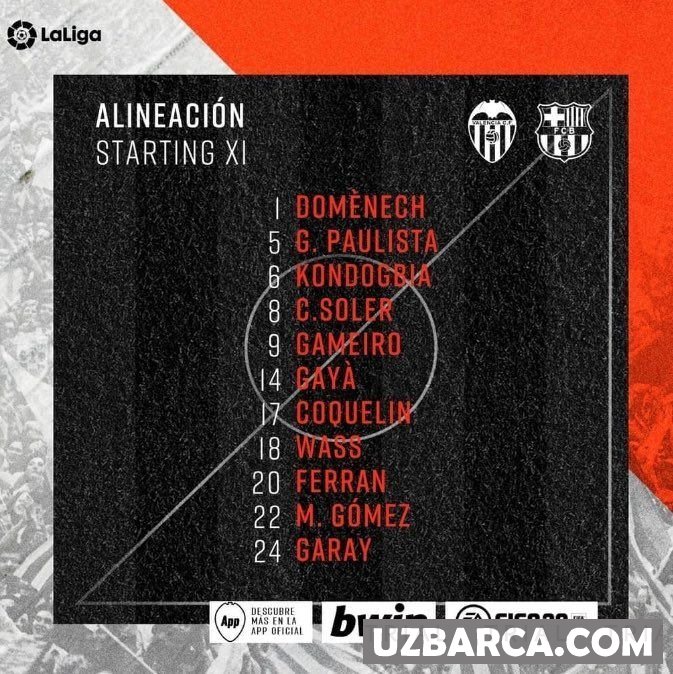 "Valensiya"ning "Barselona"ga qarshi asosiy tarkibi !