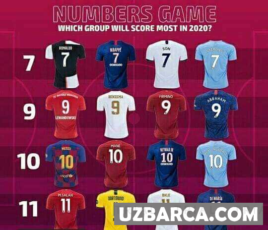 Eng kuchli 7,9,10,11 raqamli futbolchilar