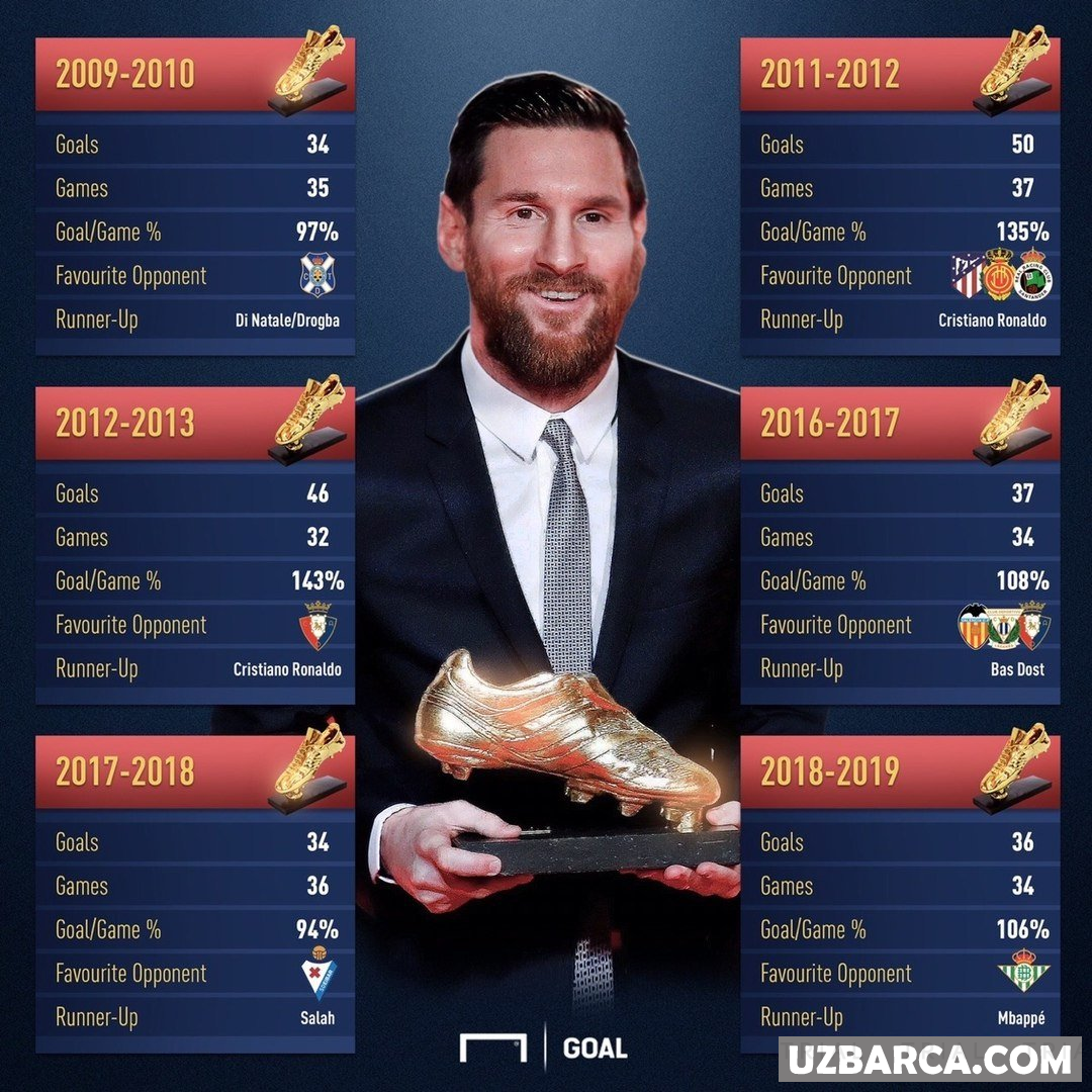 Qirolning barcha mavsumlardagi, qo'lga kiritgan oltin butsalaring statistikalari.