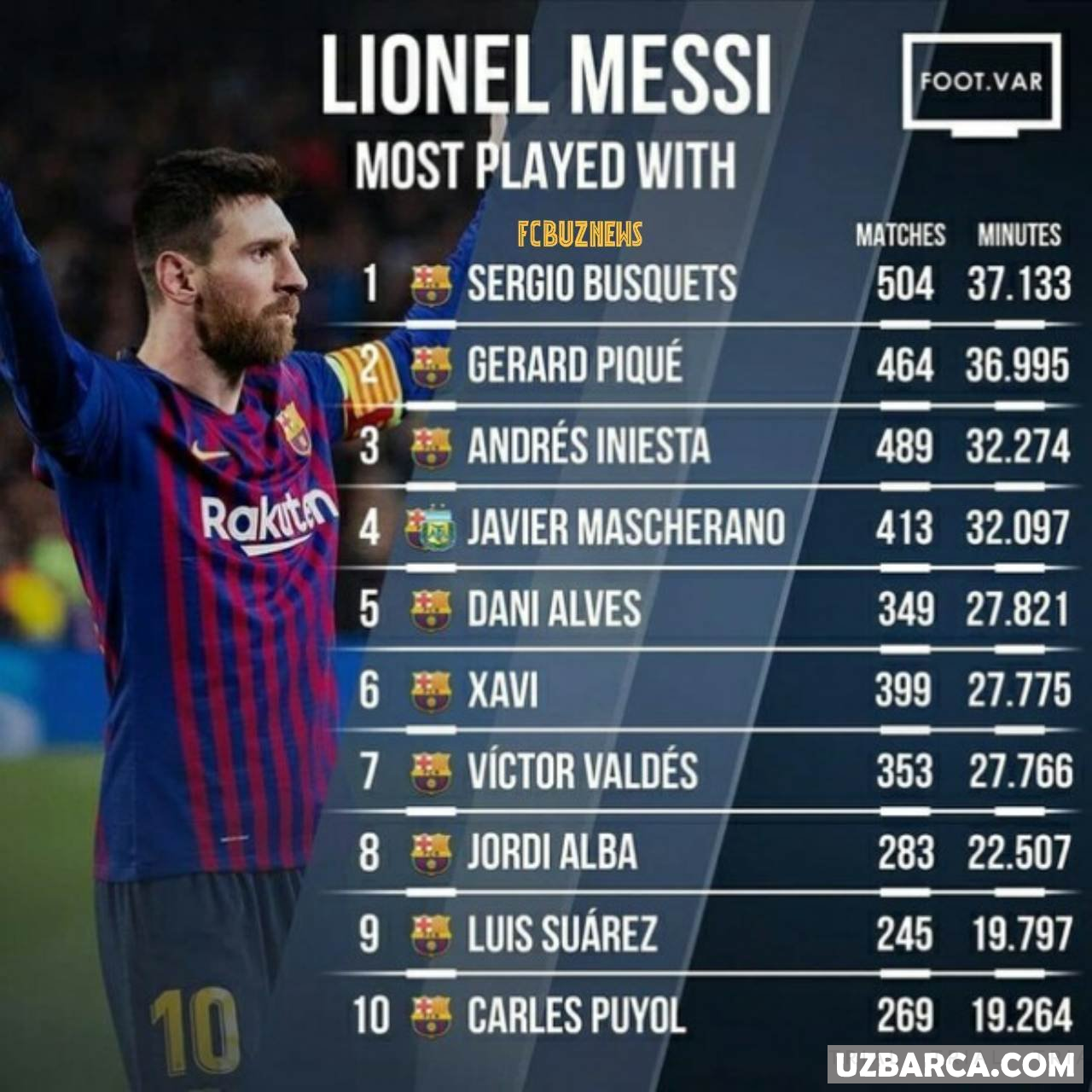 Messi bilan ko'p vaqtni maydonda o'tkazgan futbolchilar