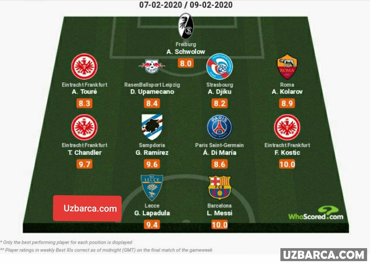WhoScored talqiniga ko'ra TOP5 chempionatlar ichida, ushbu xaftada bo'lgan o'yinlardagi eng yaxshi o'yinchilardan tuzilgan ramziy jamoa