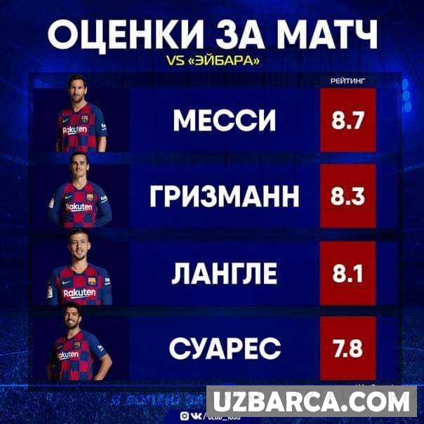 Bugungi uchrashuvda o'yinchilarimizga qoyilgan ballar
