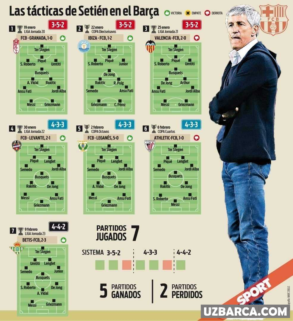 Kike Setienning Barselonada ishlatgan barcha taktik sxemalari