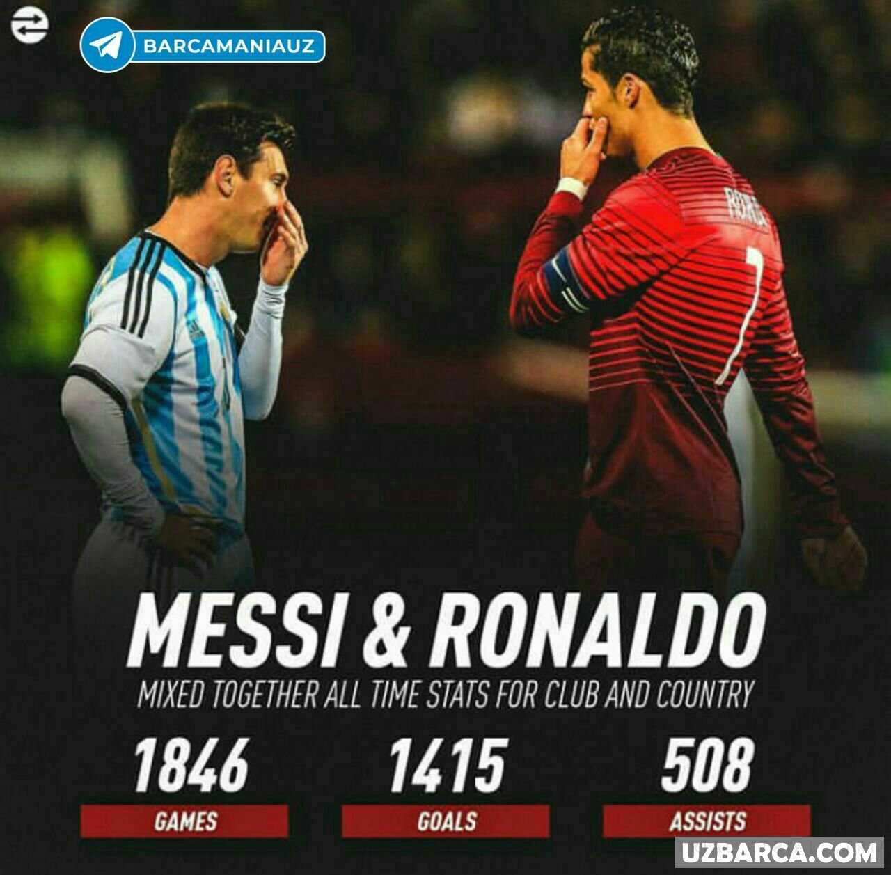 Messi va Ronaldoning barcha statistikalarini qo'shib hisoblaganda: