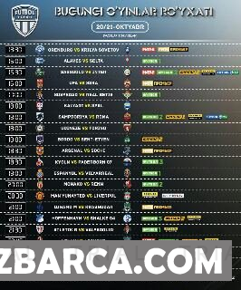 Bugungi o'yinlar va ularni translyatsiya qiladigan kanallar ro'yhati bilan tanishing!