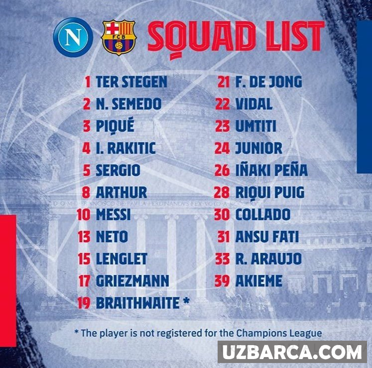 “Barcelona”ning “Napoli”ga qarshi qaydnomasi ma’lum !