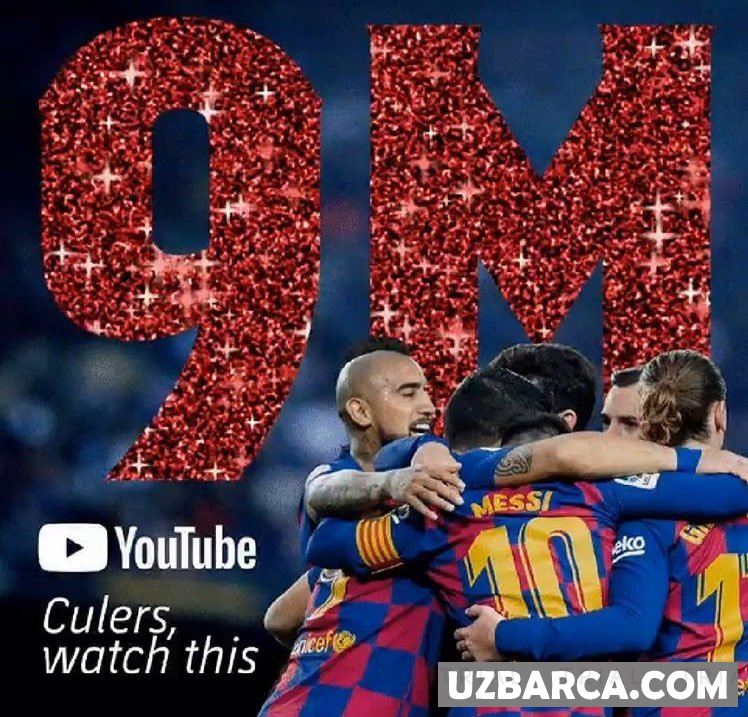 “Barcelona”ning You Tubedagi obunachilar soni 9 milionga yetdi va eng ko’p obunachiga ega bo’lgan klublar orasida 1-chi o’ringa chiqib oldi !!!