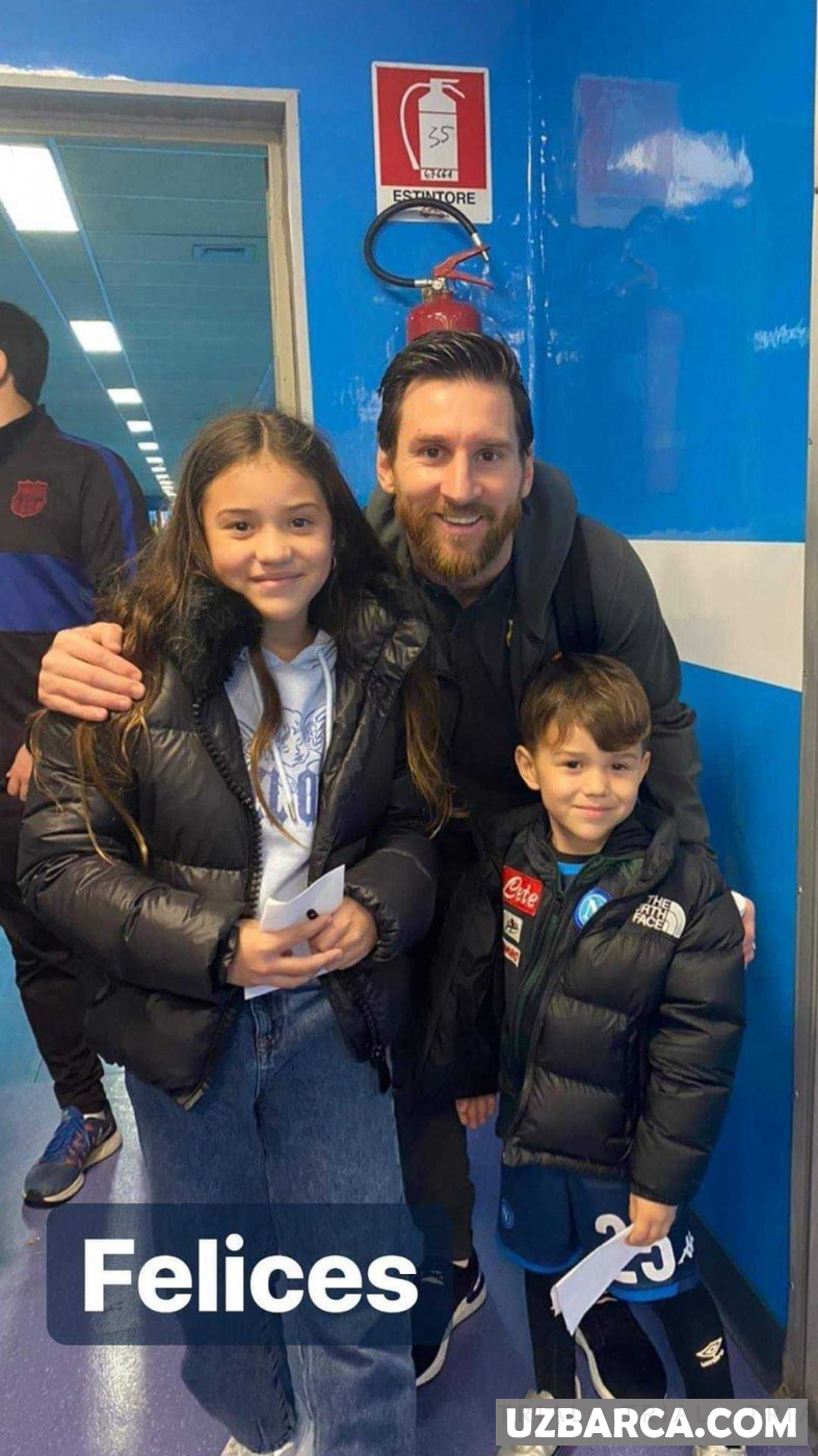 Messi Napoli posboni David Ospinaning farzandlari bilan suratga tushdi.