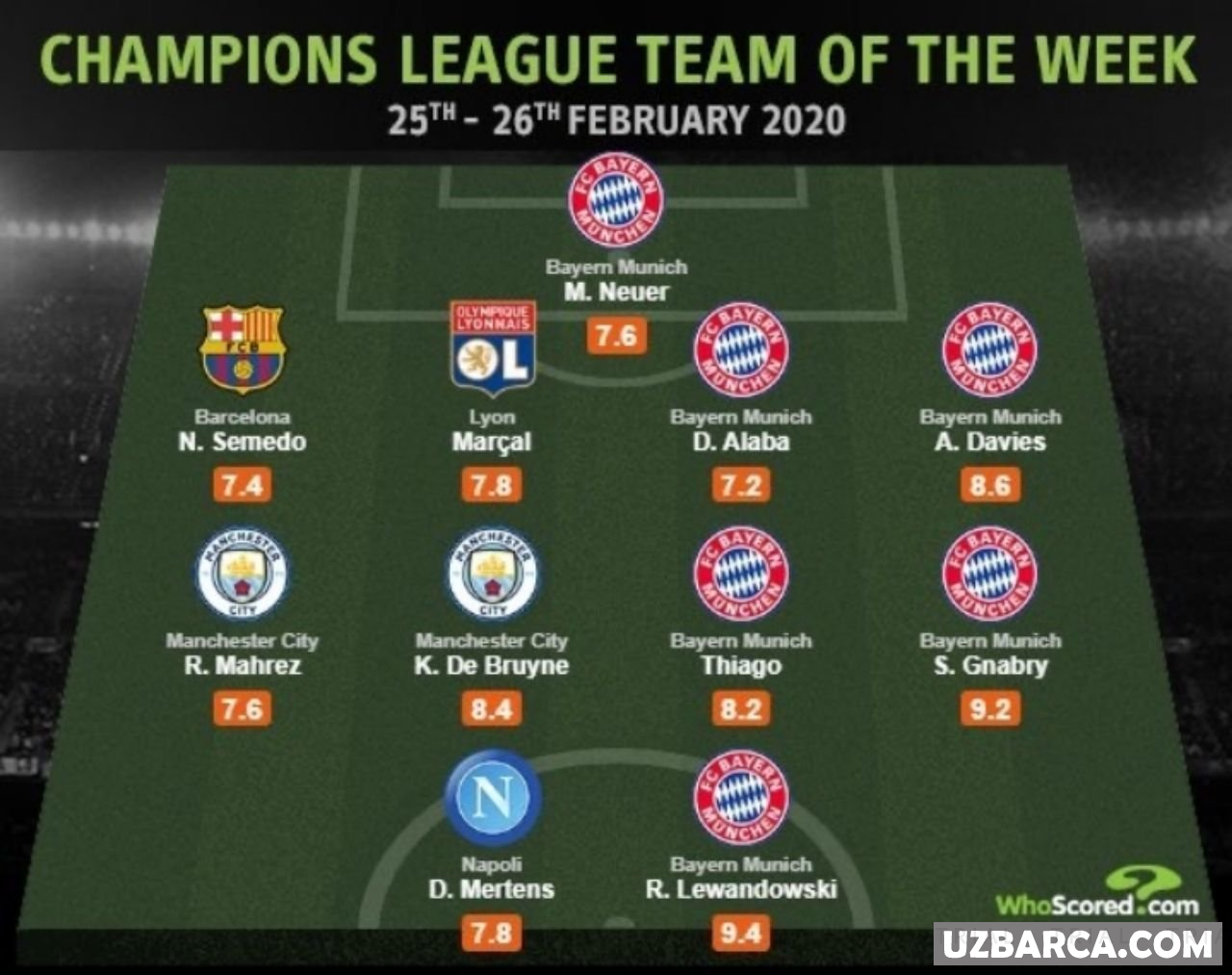 UEFA Championlar Ligasining hafta jamoasi!