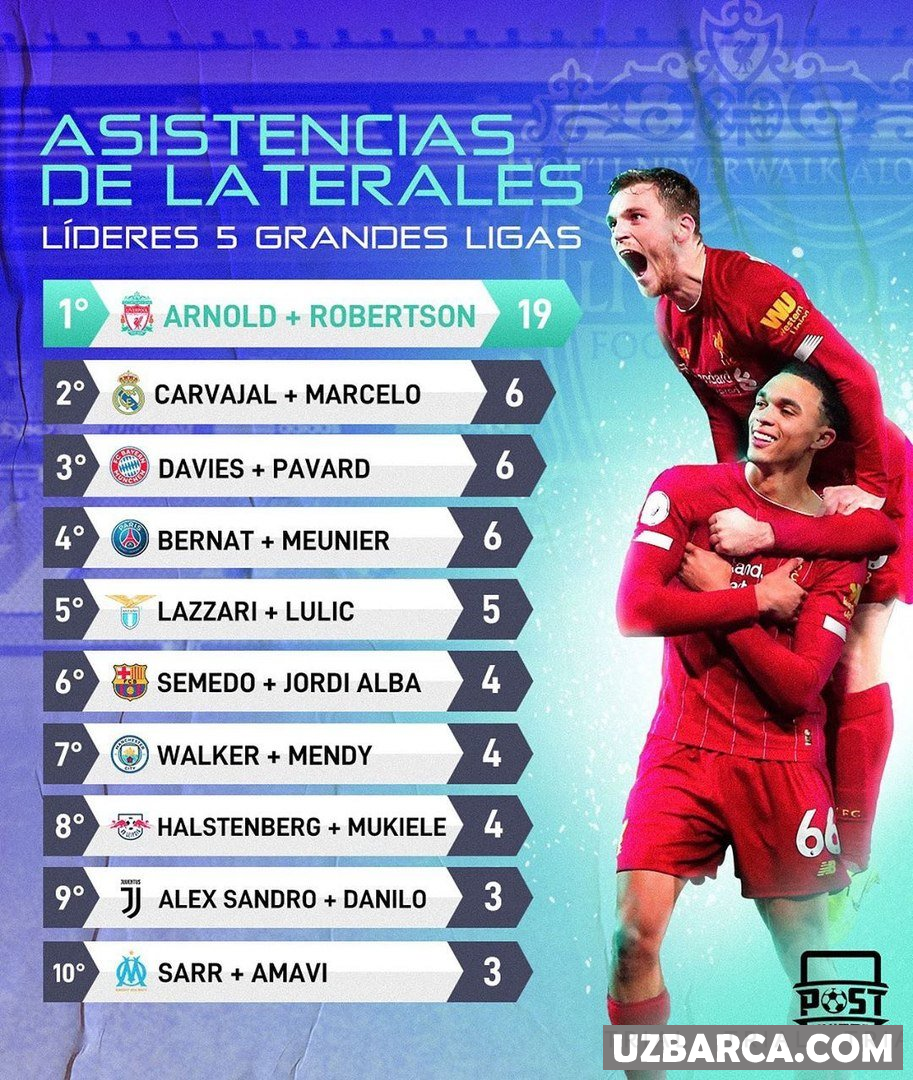 Bu mavsum TOP-5 chempionatda eng ko'p assistni amalga oshirgan tandemlar