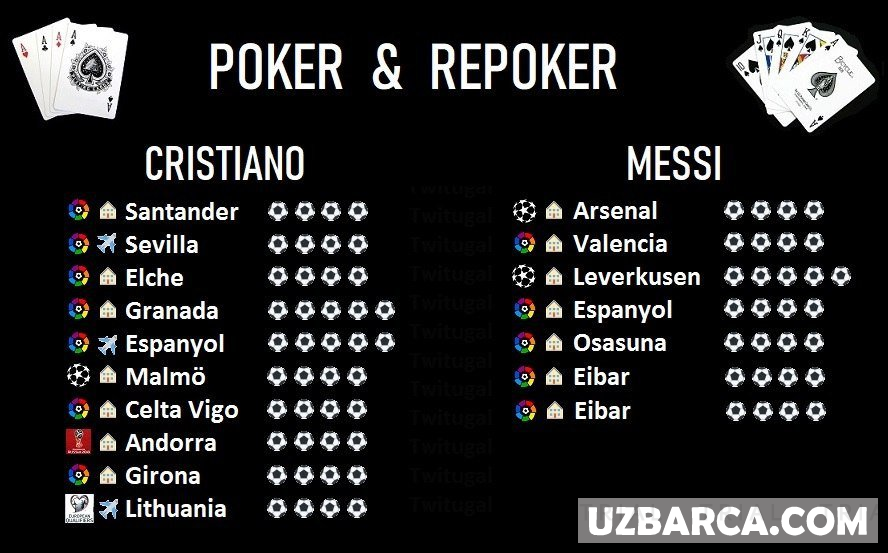 Krishtianu Ronaldu va Lionel Messining faoliyatidagi barcha pokerlarini eslatib o'tamiz