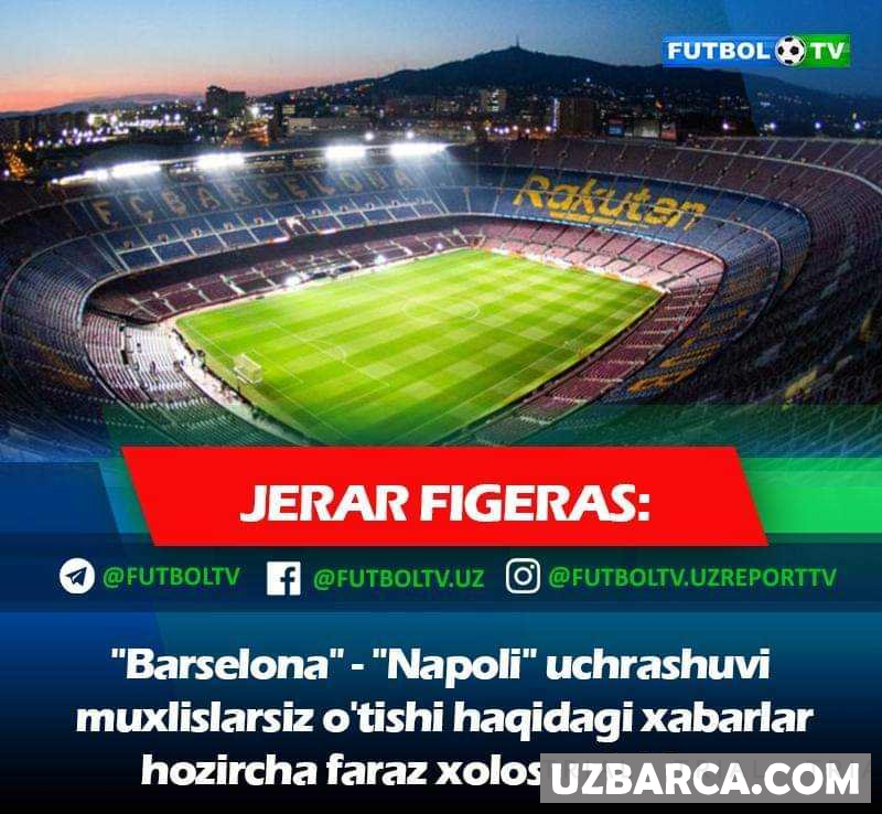 Kataloniya sport vaziri Jerar Figerasning so'zlariga ko'ra, Chempionlar ligasi 1/8 finalining javob bahsidan o'rin olgan "Barselona" - "Napoli" uchrashuvi muxlislarsiz o'tishi mumkin: "Hozircha bu faraz xolos. Qaror qabul qilinmadi, biz "Barselona" bilan gaplashamiz, dushanba yoki seshanba kuni uchrashuv belgilaymiz. Har tomonlama o'rganib chiqishimiz lozim.
