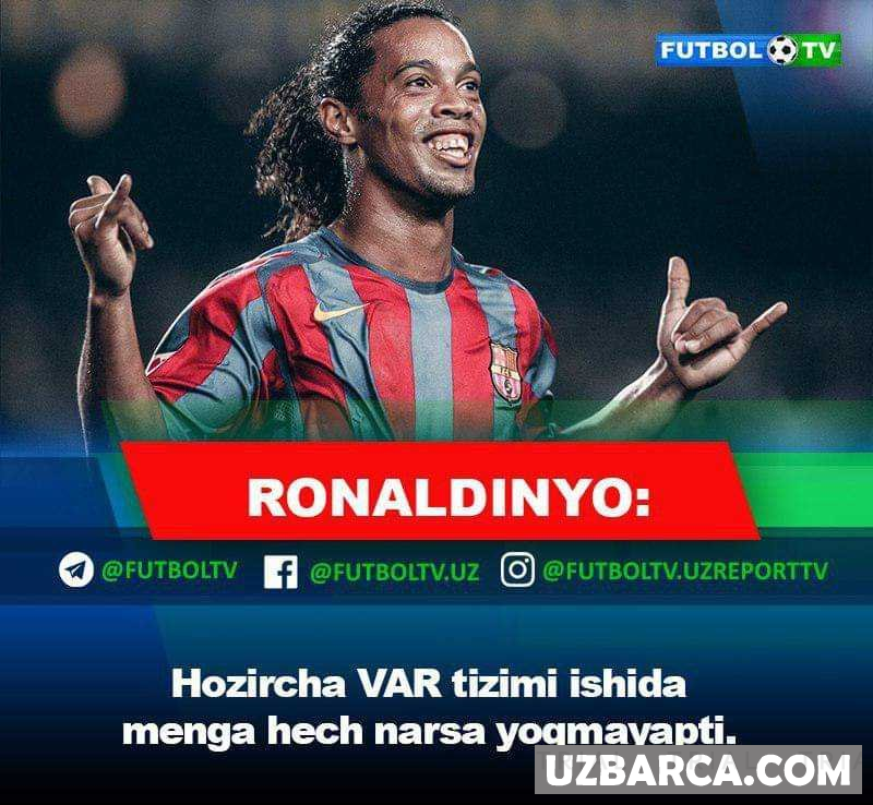 Ronaldinyo: Menga VAR tizimi joriy qilinishi haqidagi fikr hech qachon yoqmagan. Men boshqacha futbol o'ynar edim, endi esa u juda ham o'zgarib ketdi. Hozircha bu tizim ishida menga hech narsa yoqmayapti.