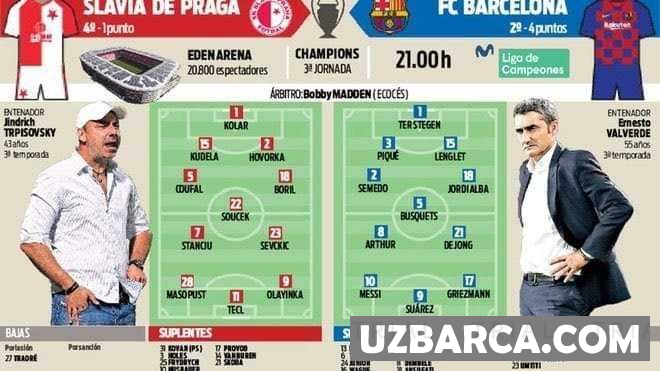 Slavia Praga vs Barselona taxminiy tarkiblar