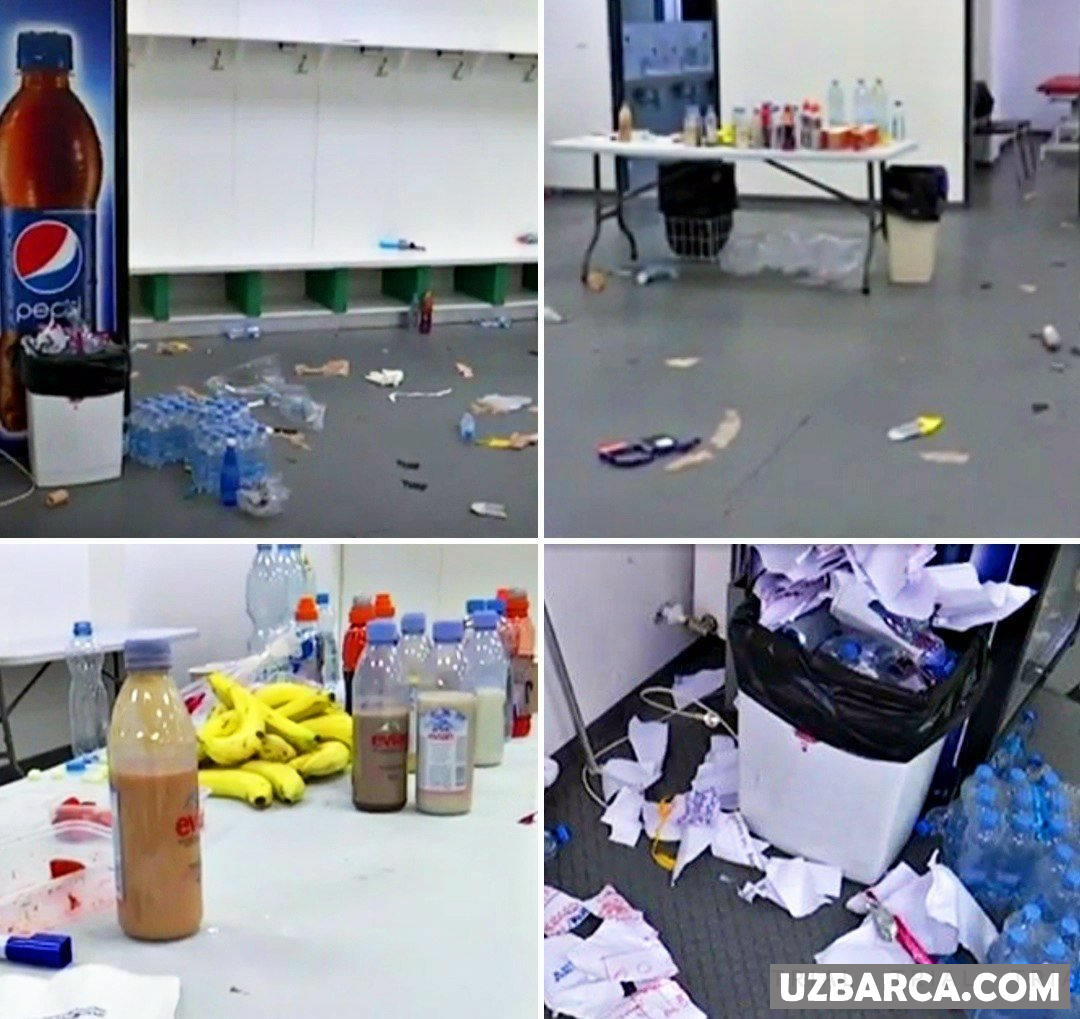 "Barcelona" futbolchilari "Slavia Prague" klubining yechinish xonasini mana shunday holatga keltirib, tark etishdi (FOTO)