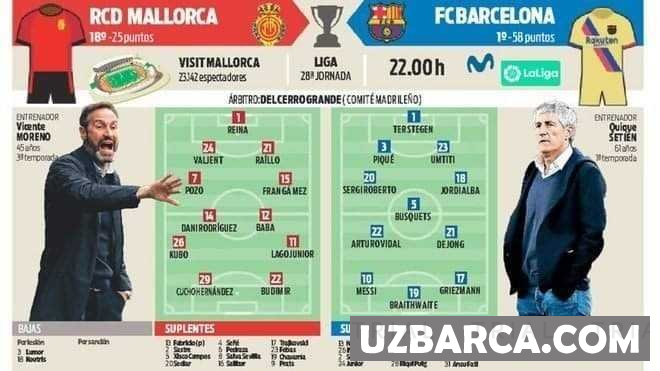 Mallorka vs Barselona taxminiy tarkiblar