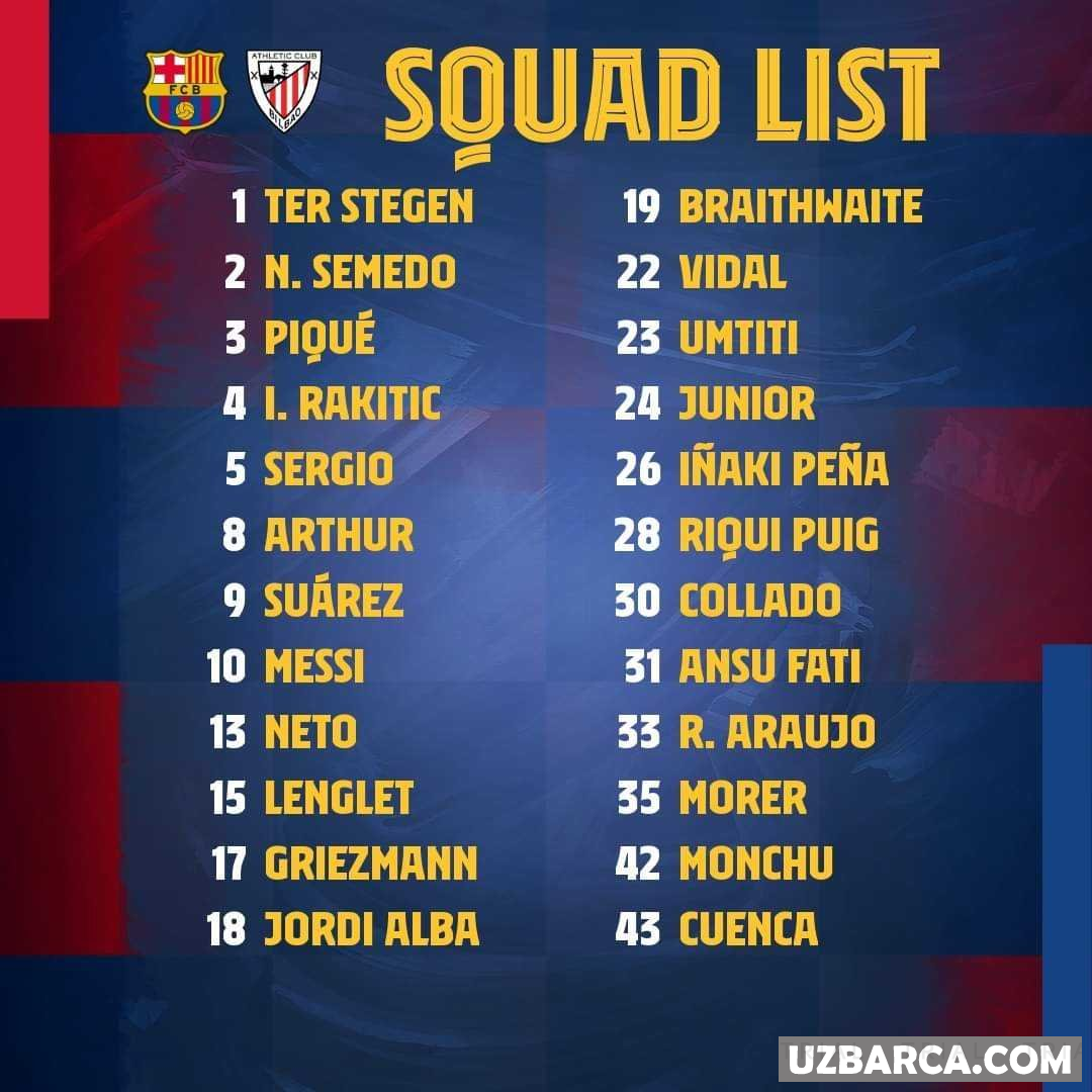 "Barselona"ning "Atletik"ga qarshi qaydnomasi ma'lum