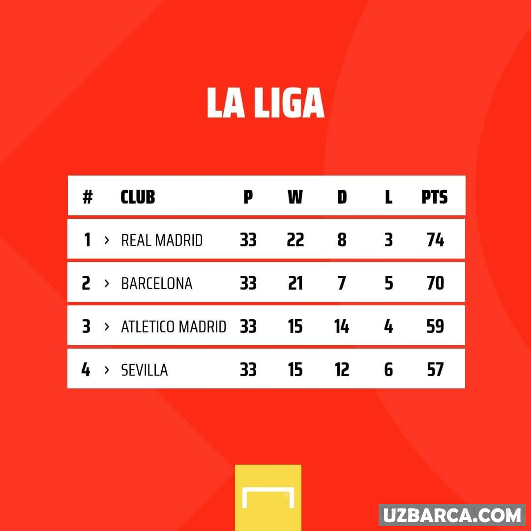"Real Madrid" "Barselona"dan 4 ochko ilgarilab ketti.