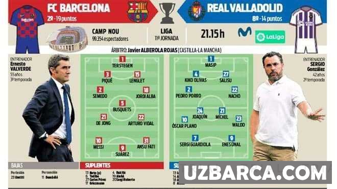 Barselona vs Real Valadolid taxminiy tarkiblar